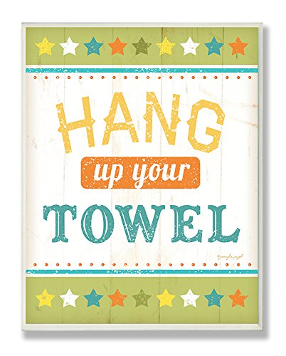 Stupell Home Décor Hang Up Your Towel Colorful Bathroom Wall Plaque, 10 x 0.5 x 15, Proudly Made in USA