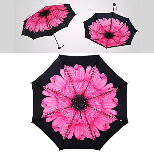 -. Title : 99 % UV カット 雨晴兼用 折りたたみ 傘 8本骨 大型 96cm 耐風 撥水 軽量 花 内側 柄 (ピンク)