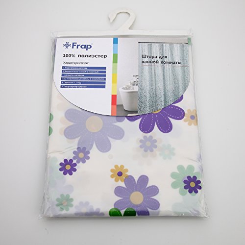 Frap Flower Partern Mildew Resistant Anti-Bacterial PEVA Shower Curtain for Bathroom, 72 x 72 Inch