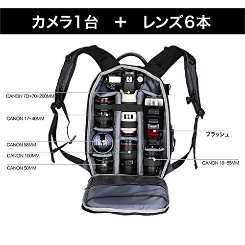 -. Feature : タウンユースにぴったりのおしゃれなカメラリュック。一眼レフカメラと交換レンズ数本を収納でき、さらにはノートブッックや三脚まで携帯できる大容量バックパック。グレーとカーキの2色 / 取り外し可能な仕切りでコンパートメントを自由にアレンジが可能。ミラーレス一眼や、望遠レンズ、ストロボ、ノートPC、タブレット、アクセサリー類を効率的に収納できます。 / 通気性の良いメッシュパッド、肩への負担を軽減するように設計されたストラップ、三脚ホルダー、サイドポケットなど使いやすさのための工夫がたくさん / 撥水加工のナイロン素材でできており、小雨や水しぶきなどから機材を守ります。 / 高さ 44cm 幅 16cm 奥行 29cm 重さ :1.2kg
