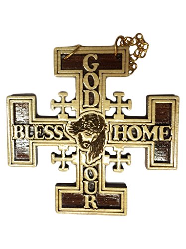 Special valentine day present, Wooden Wall Hanging Cross with "God Bless Our Home" Carving on it, Handmade Wall Hanging, Wall Cross for Home Decor, Wooden Wall Cross, 4"