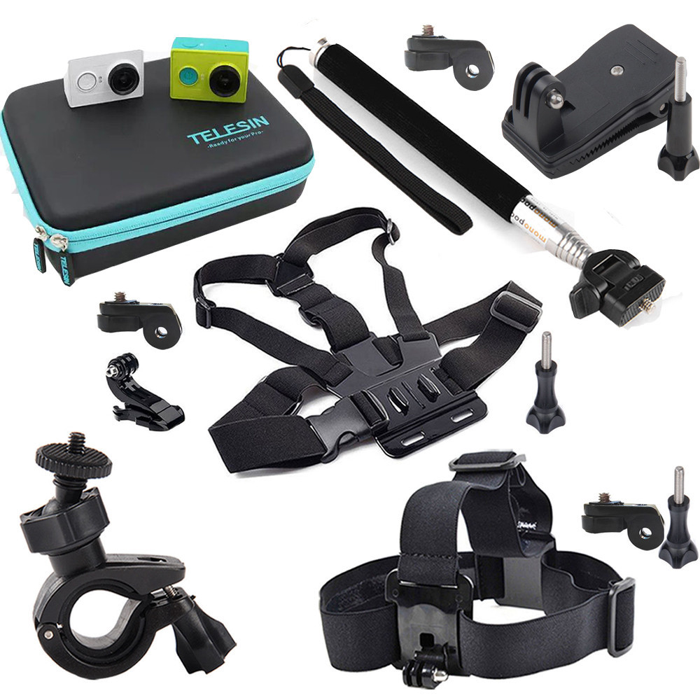 Package Included: 1 x Chest Mount Harness 1 x Head Strap Mount 1 x Extension Selfie Pole Mount Black 1 x Bike Handlebar Mount 1 x 360 degree bag clip 1 x waterproof case bag