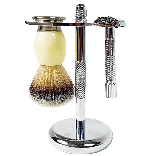 ★DELUXE MEN'S WET SHAVE KIT – You will fall in love with this premium wet shave brush with safety razor, all displayed handsomely on the deluxe chrome metal shaving brush stand that makes it the very best wet shaving kit on the market.