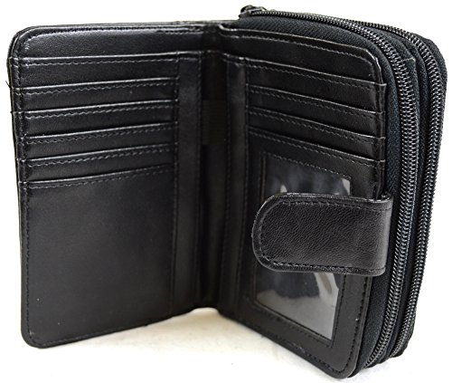 1 Zipped Compartment with 3 Credit Card Slots, 1 ID/Photo Window, 2 Open Slots and 1 Zipped Pocket Inside.