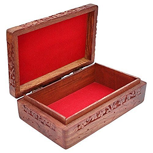 Valentine Day Special Present, Wooden Storage Jewelry Box Carving Work Rectangle Box,Multipurpose Keepsake Storage Box, Earring Box, Vintage Box, Brown Color Size 8 X 5 Inch