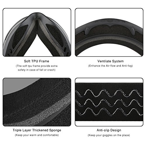 Special Feature of ALKAI Ski Goggles:Double lens:To prevent the heat inside and outside the lens caused by fog.