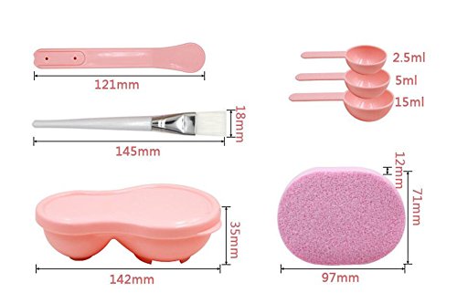 -. Feature : Package include 1 x Mask Bowl ,1 x Mask Brush ,1 x Mask Stick,1 x2.5ml x Mask Spoon,1 x5ml x Mask Spoon, 1 x15ml x Mask Spoon and 1 x Powder Puff. / The mask bowl made of high quality plastic , soft , elastic , sturdy and durable / The mask stick has nice hand feeling. Using to whisk, to spread wipe the face mask / The mask spoon with three different capacity , according to the need of quantity / The mask brush is made of high quality nylon hair mask , feel comfortable , not hurt the skin , is your good assistant in skin care