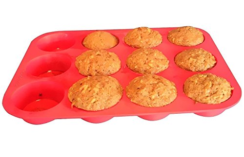 CHICHIC Non-Stick Silicone Muffin Pan, Cupcake Pan, Red