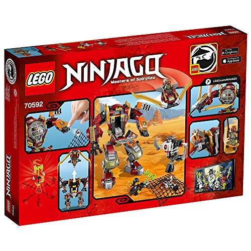 -. Feature : Build an awesome, poseable Salvage M.E.C. mech with a sP.R.Ing-loaded shooter, a golden bow, and an opening minifigure cockpit / Includes four minifigures featuring Ronin with special M.E.C. outfit, Nya with special Sky Bound outfit, plus Krazi and Frakjaw / Ronin's flyer measures over 1" high, 3" long and 2" wide. Skulkin mech measures over 3" high, 1" long and 1" wide / L.E.G.O NINJAGO building toys are compatible with all L.E.G.O construction sets for creative building / Featured in the hit TV series L.E.G.O NINJAGO: Masters of Spinjitzu. / 439 pieces - For boys and girls between the ages of 8 and 14 years old
