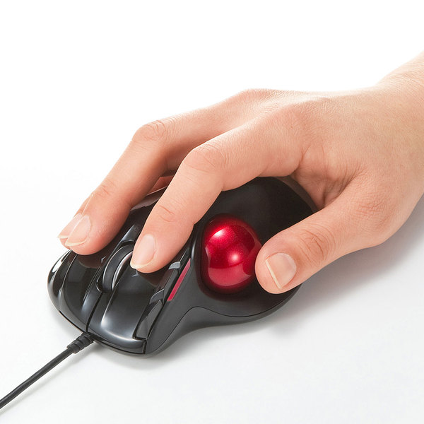●手のひらを軽く添えるだけでフィットする、エルゴノミクス形状のトラックボールです。