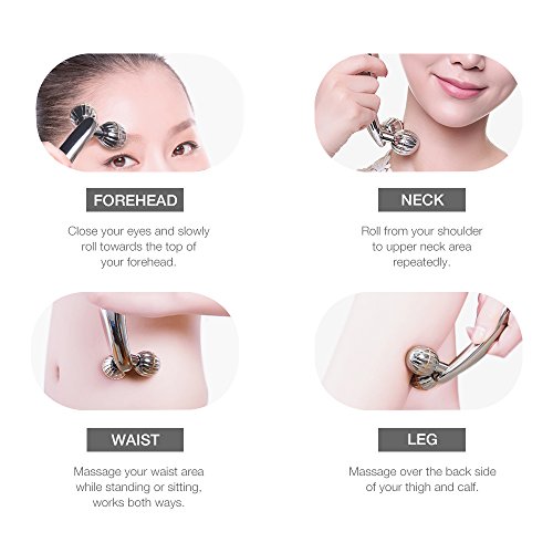 -. Feature : Y-Shaped Face Roller Massager: Unique Y-shaped design creates considerable absorption between the rollers and your skin. Closely tracing your face outline, effectively knead and massage flab, relieve sensitivity skin, promotes face-lift skin tightening and alleviates tension. / 3D Ball Roller Massager: 3D ball rollers with raised triangular texture can be used for facial care and body care, effectively pulling and lifting your skin, activating your skin cells, improving blood circulation and speeding up skin metabolism, bringing your skin back to be tight and tender. / Face Slimming Massager: Pay special attention to the parts you care about and strive for the ideal slim face and beautiful body shape! Dozens of minutes per day promote facial lymphatic circulation and achieve effect of face slimming. / Body Skin Roller Massager: Applicable to your whole body. It is a massager for your face, arms, legs, breast, buttocks and back or other parts. Better massage effect will be achieved when combined with essential oil or other skin care products. In addition, little acupoint ball on the end of the handle can effectively stimulate the acupuncture points to help relax. / Portable Roller Massager: Ergonomically streamlined massage handle can be easily accomandate to work on different massage spots. Easy to hold, easy to use, simplify, portable, no charging required, easy to clean and seemingly last forever.