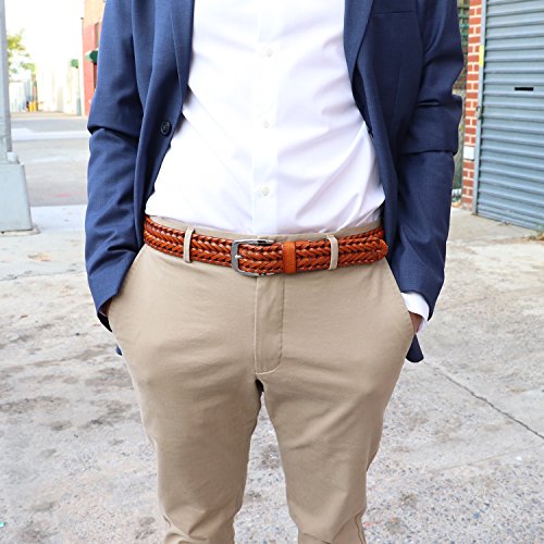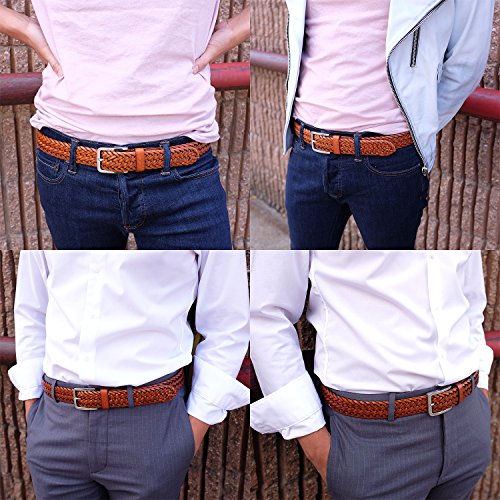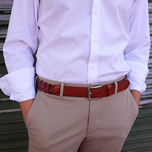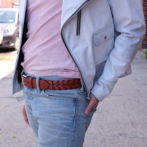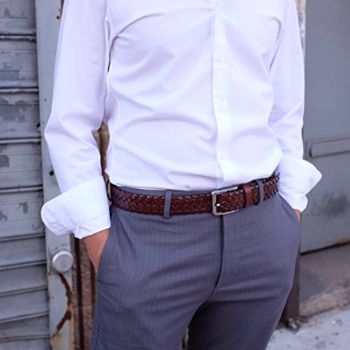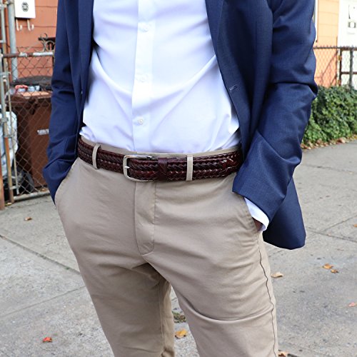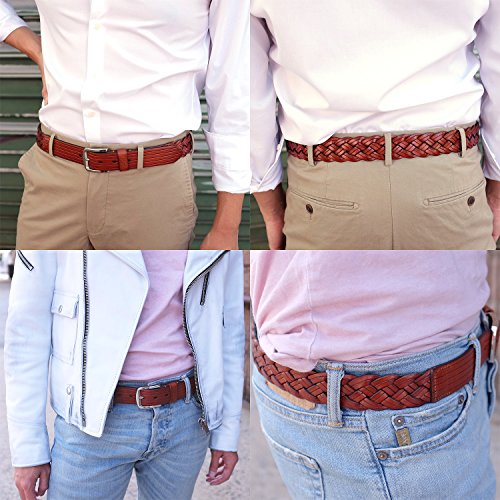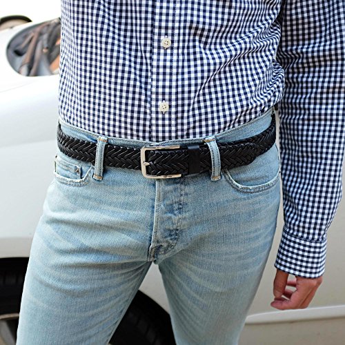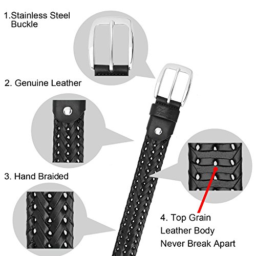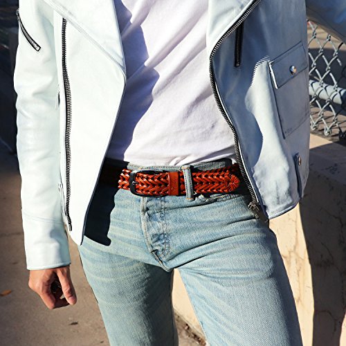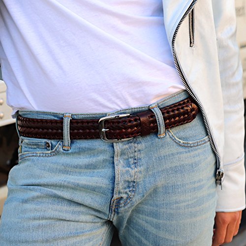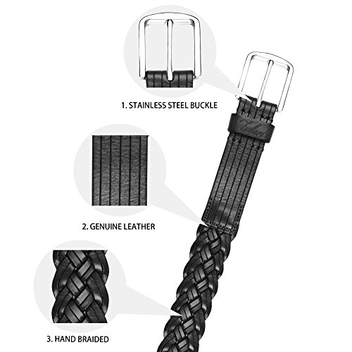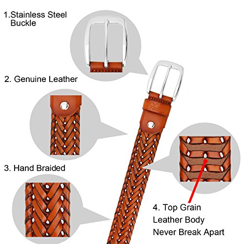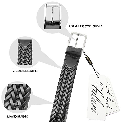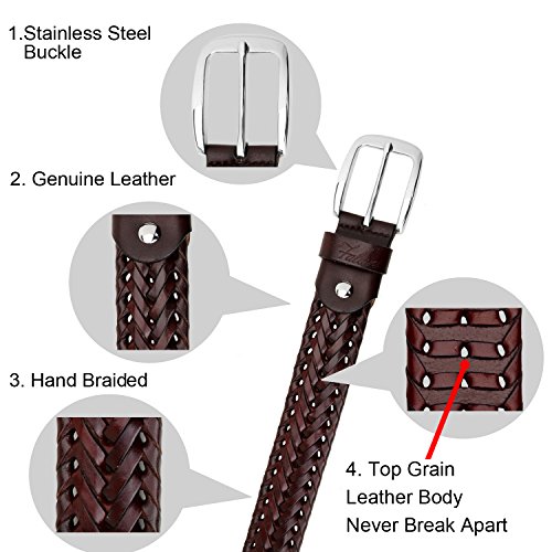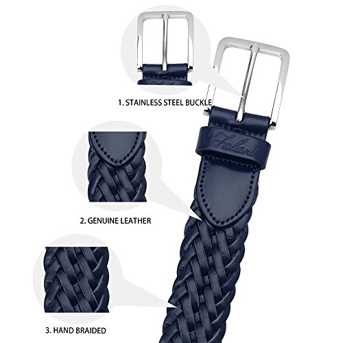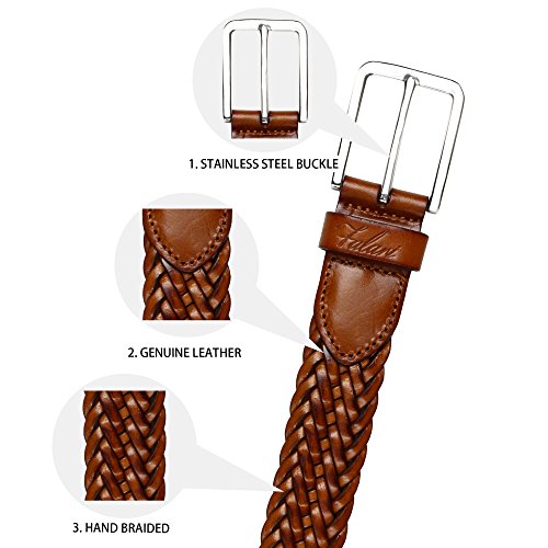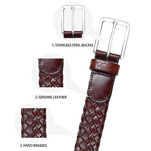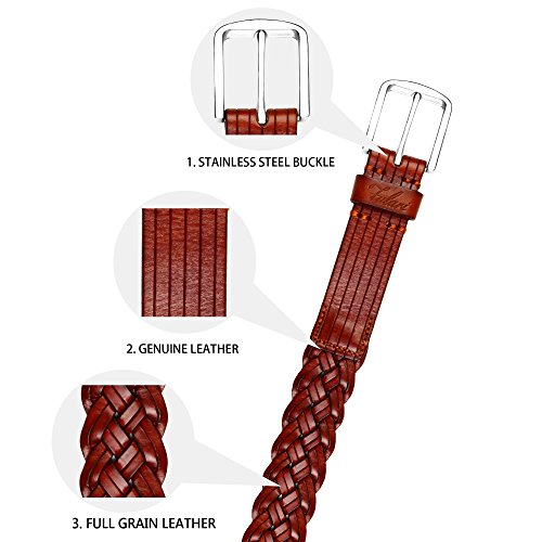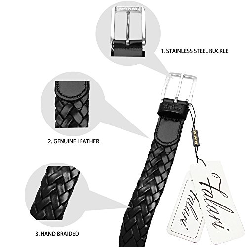 | Falari Men's Braided Belt Stainless Steel Buckle Leather 35mm |