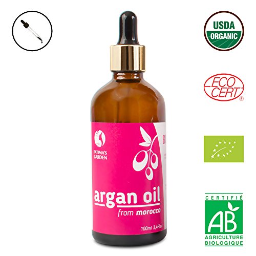 -. Title : Fatima's Garden Argan Oil for Face, Hair, Skin and Nails, Moroccan Oil USDA Ecocert Certified Organic Pure Virgin Cold Pressed Moroccan Anti-aging Moisturizer