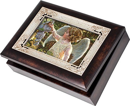 -. Feature : Cottage Garden Angel In The Garden Burlwood With Silver Inlay Italian Style Music Box / Jewelry Box Plays Wind Beneath My Wings