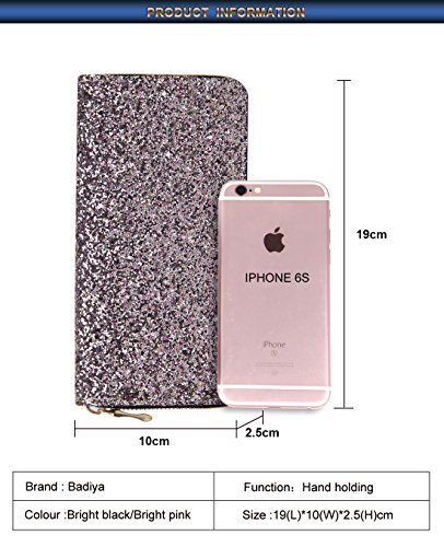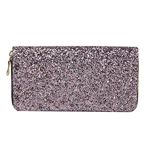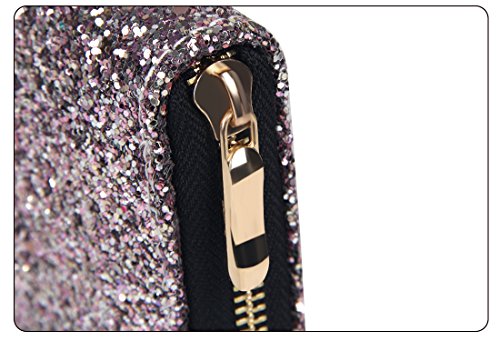 Badiya Fashion Sequins Design PU Leather Women Zipper Around Wallet Clutch Purse