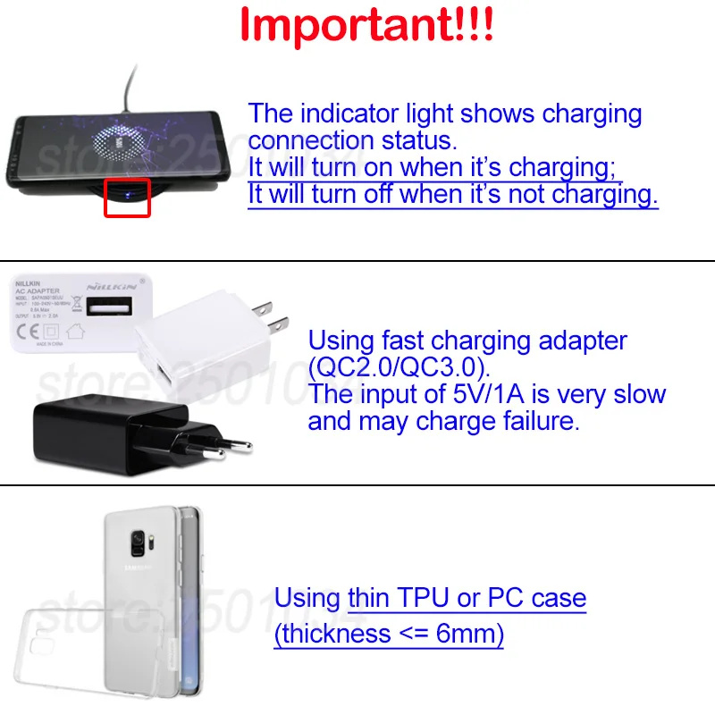Input Power(Wireless Charger):5V/2A, 9V/1.7A