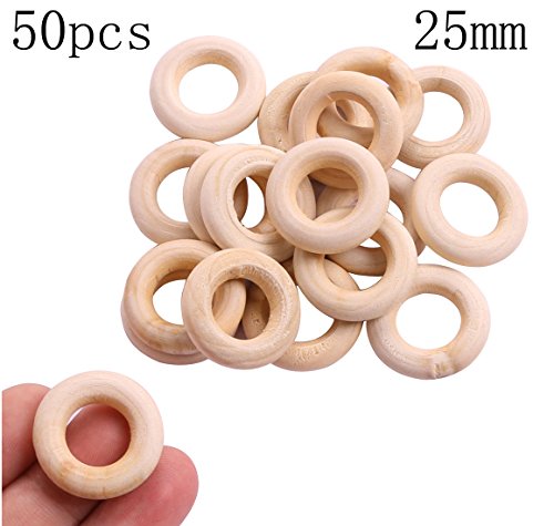 Penta Angel 50PCS 25mm/1" Natural Unfinished Wood Rings Circle Wood Pendant Connectors for DIY Projects Jewelry and Craft Making