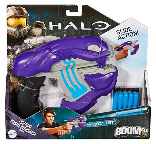 -. Feature : Epic accuracy and shooting distances up to 70 feet Firing distances are approximations only / HALO-inspired Covenant deco and designs / Brings the Halo in-game experience to life / Includes 5 Smart Stick darts / Dive into the HALO Universe - blaster first!