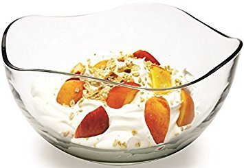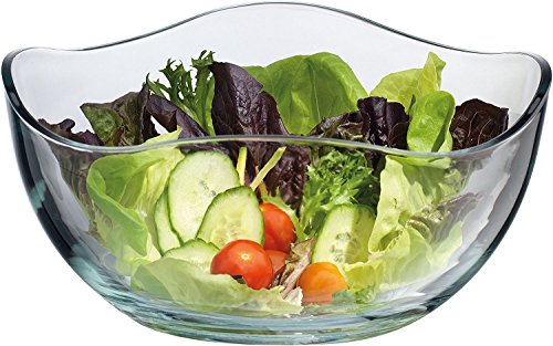 Large Clear Glass Wavy Salad Bowl, Mixing Bowl, All Purpose Round Serving Bowl