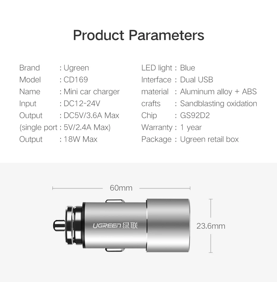 Model Number:CD169 USB Car Charger