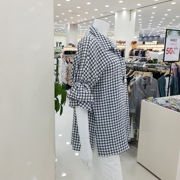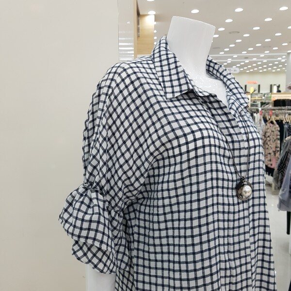 여성 스러운 러플소매가 포인트로 시원하고 착용감이 좋은 셔츠형블라우스입니다.