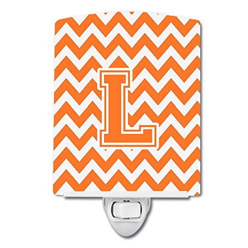 Caroline's Treasures Letter L Chevron Orange and White Ceramic Night Light, 6 x 4", Multicolor