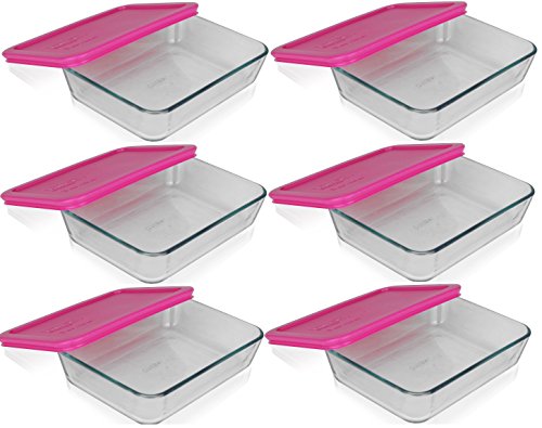 - Includes (6) 3-Cup Rectangular Dish with Pink Plastic Lid Made of nonporous glass that won't chip, stain, or absorb odors