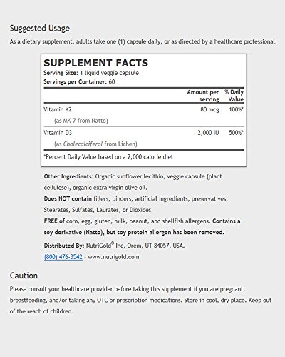 -. Title : Vitamin K2 + D3 GOLD (Food-Sourced, Vegan) - Bone Support (60 liquid veg capsules) by NutriGold
