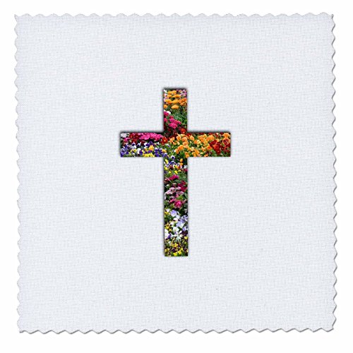 3dRose Multicolored Floral Christian Cross - Colorful Flower Pattern Crucifix - Quilt Square, 6 by 6-Inch (qs_185481_2)