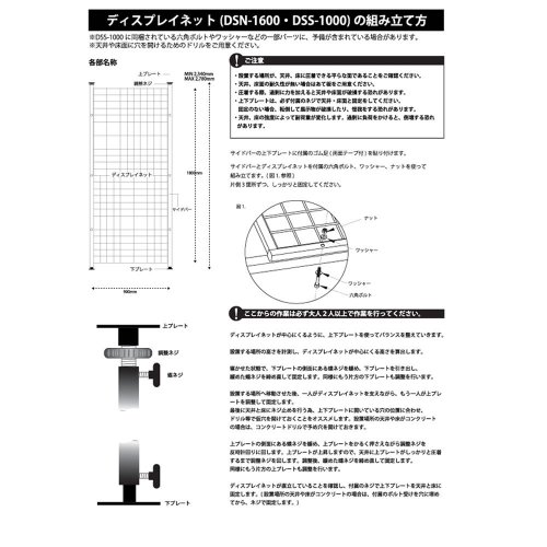 (net to put the guitar or cable) ● side for display net bar DSS1000 (Attach the display net floor Please pay careful attention because the bar ※ This sidebar a firm floor and and not fixed to the ceiling net fixed to the ceiling there is a risk of falling and.)