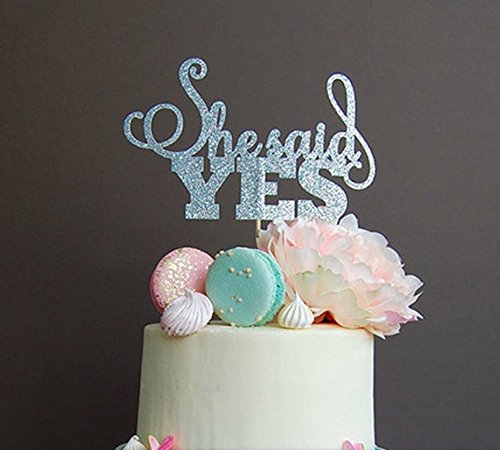 Maydolbone She Said Yes Cake Topper, Bridal Shower,Engagement Party Decoration(Silver)