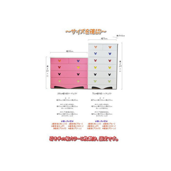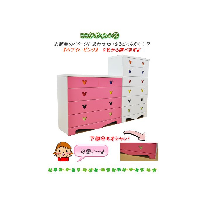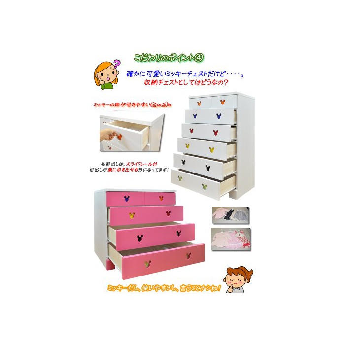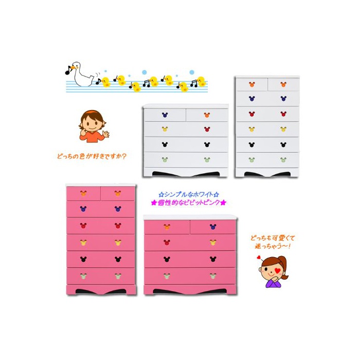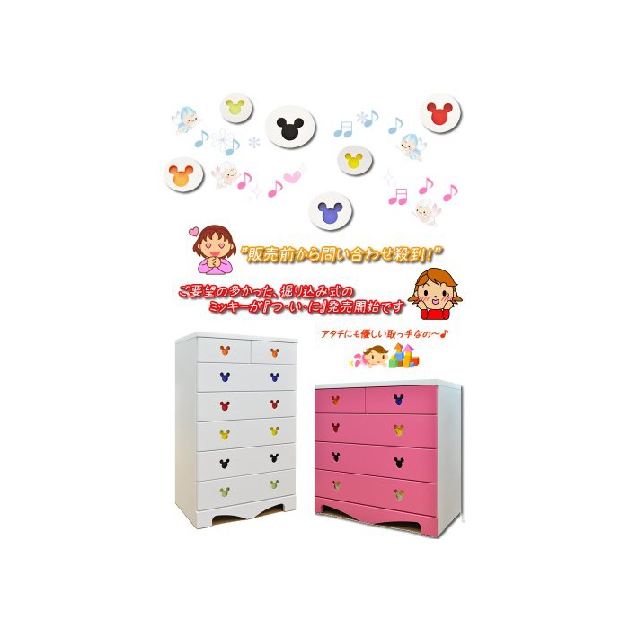 원본상품명: ディズニ?家具ハイチェスト75-6ポップミッキ?(ピンク)