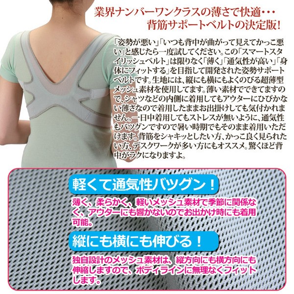 【商品名】姿勢サポートベルト/スマートスタイリッシュ 【オールシーズン対応/薄生地タイプ】 日本製