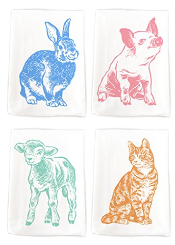 Rigel Stuhmiller 4-Pack Assortment "4H Farm Animals" Screenprinted 100% Cotton Flour Sack Dish Towels