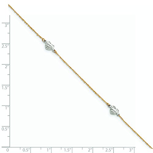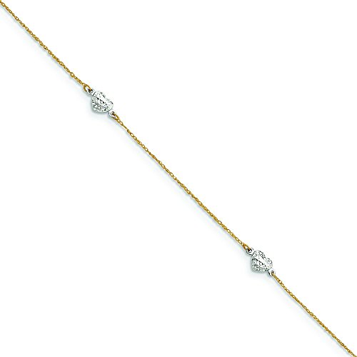 14k Two-Tone Gold Puff Heart 9inch With 1in Ext Anklet - .9 Grams in 14k Yellow Gold and White Gold - JewelryWeb Style: QTA213020YW - FREE gift-ready jewelry box