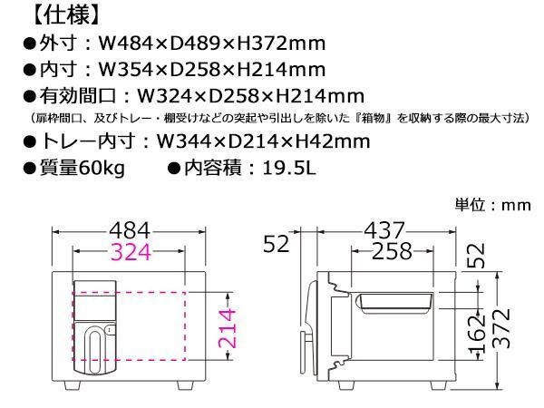 | 仕様 | 使用電池:単3乾電池×4本 内容積:19.5L テンキー式 |