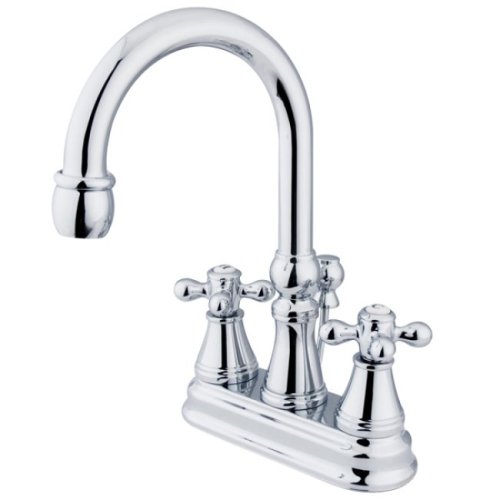 Kingston Brass KS2611AX Governor 4-Inch Centerset Lavatory Faucet with Brass Pop-Up with Metal Cross Handle, Polished Chrome