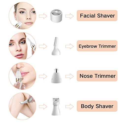 Ladies Electric Razor for Face Women Eyebrow Shaver Hair Removal Depilador Facial Epilators Fairycity 4 in 1 Groomer Body Hair Remover Bikini Trimmer for...