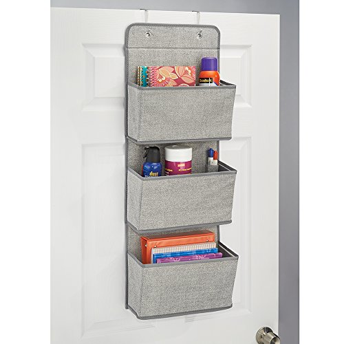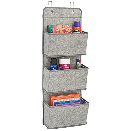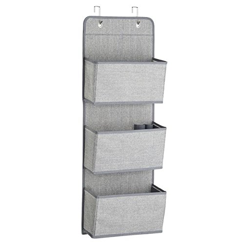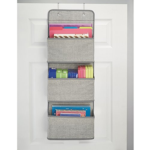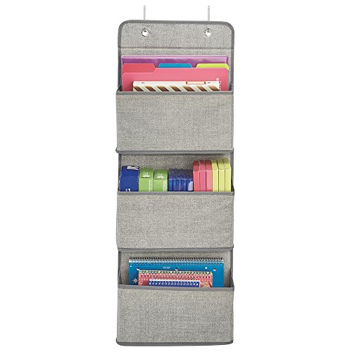 mDesign Wall Mount/Over the Door Fabric Office Supplies Storage Organizer for Notebooks, Planners, File Folders - 3 Pockets, Gray