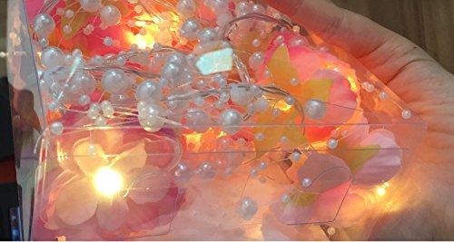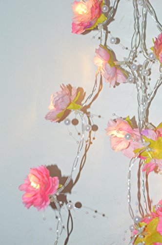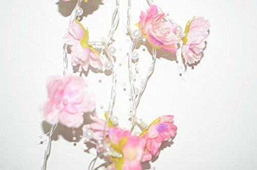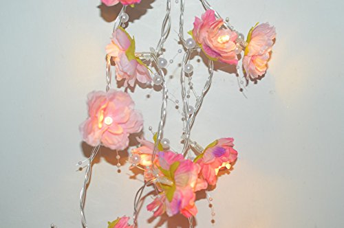 Total 8.2 feet, 20 Warm White LEDs inside pink and white flowerers with pearl