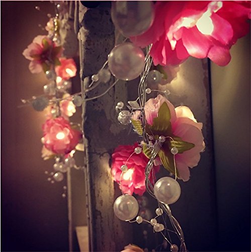 FANStek 20 LED Fairy Red White Flowers Pearls Battery Operated String Lights LED Decoration For Christmas Wedding (Pink)