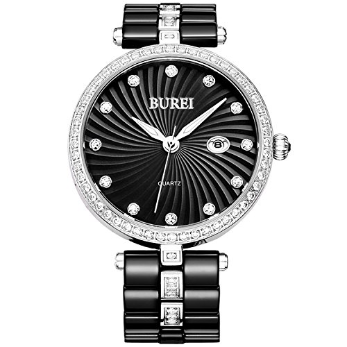 -. Binding : Watch -. Brand : BUREI -. Department : Womens -. EAN : 0712145416522 -. Feature : Elegant Ladies Watch Design: Protective scratch-resistant hard mineral crystal lens; round stainless steel case inlaid with Crystals; luminous pointer. / Easy to Adjust Strap Length:A free link remover is provided with this watch. You can adjust the band length at home by yourself after reading instruction. Imported Japanese Movement and battery are used in this BUREI men's wrist watch, this watch will serve for more than 2 years. / Water Proof: 30M water resistant. Suitable for daily use. However it is not recommended to wear for swimming or related underwater activities. / Exquisite Fashion Package: BUREI watch is elegant packaged in a stylish and luxurious watch box, an ideal gift for someone you care about. Size : Watch strap: Length: 168mm; Width: 16mm Thickness :8mm; Watch case :34mm. / Customer Service: Shop with confidence. Your satisfaction is our utmost priority.Each BUREI watch comes with a 30-day money back guarantee NO QUESTIONS ASKED;12-months warranty replacement or full refund on any product malfunction;24-month maintenance assurance on any quality issues. -. Label : BUREI -. Manufacturer : BUREI -. Model : BL-3029LA-02E -. MPN : BL-3029LA-02E -. PackageQuantity : 1 -. PartNumber : BL-3029LA-02E -. ProductGroup : Watch -. ProductTypeName : WATCH -. Publisher : BUREI -. Studio : BUREI -. Title : BUREI Women Crystal Pearl Quartz Wrist Watches with Silver Date Dial Black Ceramic Bracelet -. UPC : 712145416522