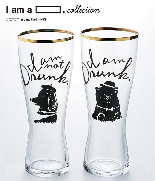 各グラスに「I am Drunk.(私酔ってます)」と「I am not Drunk.(私、素面です)」が印字されている対話形式のビアグラスセットです。 |