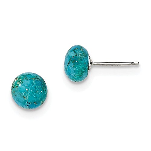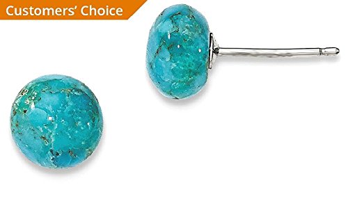ICECARATS DESIGNER JEWELRY 925 STERLING SILVER 8 8.5MM BUTTON BLUE TURQUOISE POST STUD BALL BUTTON STUD EARRINGS