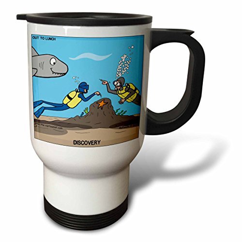 3dRose Scuba Surprise Diver Points Out Star Fish and Buddy Points Out The Shark Travel Mug, 14-Ounce