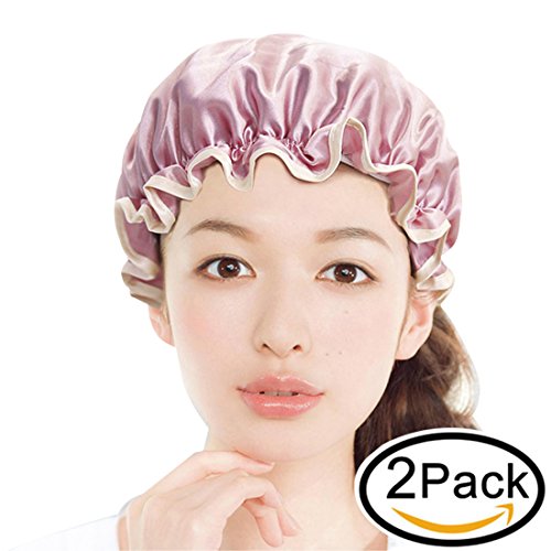 Shower Cap,Reusable Waterproof Bath Hat,Designed for Women Waterproof Double Layer Satin Lined,The Best in Hair Protection