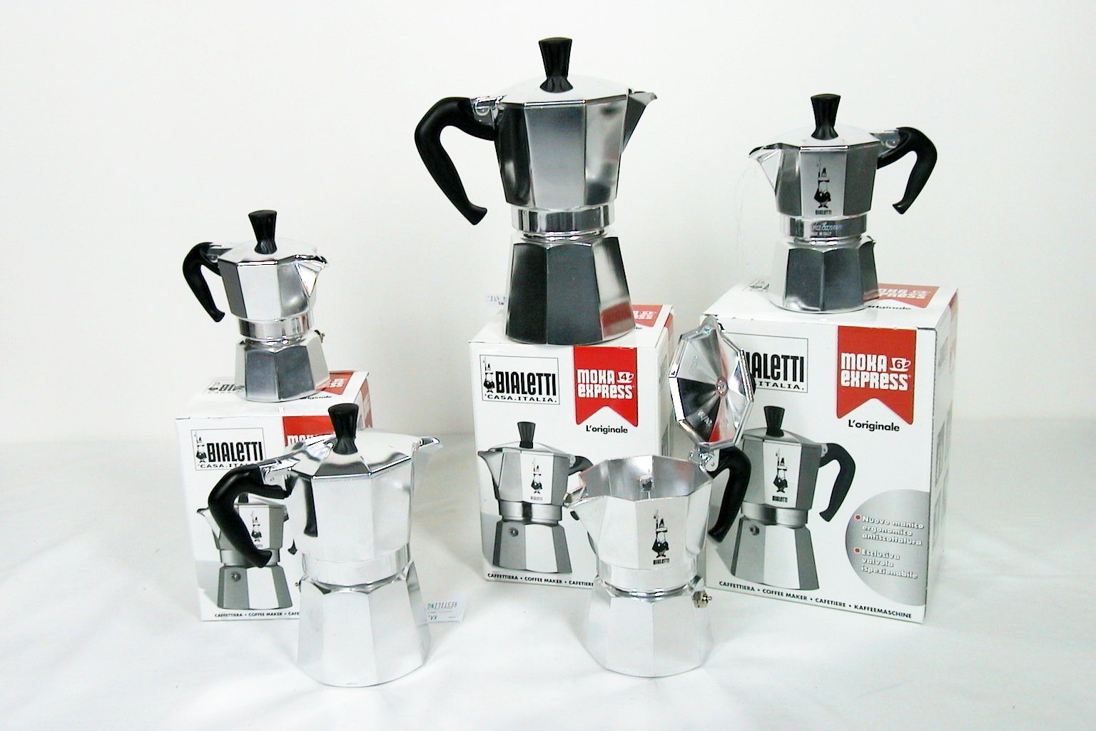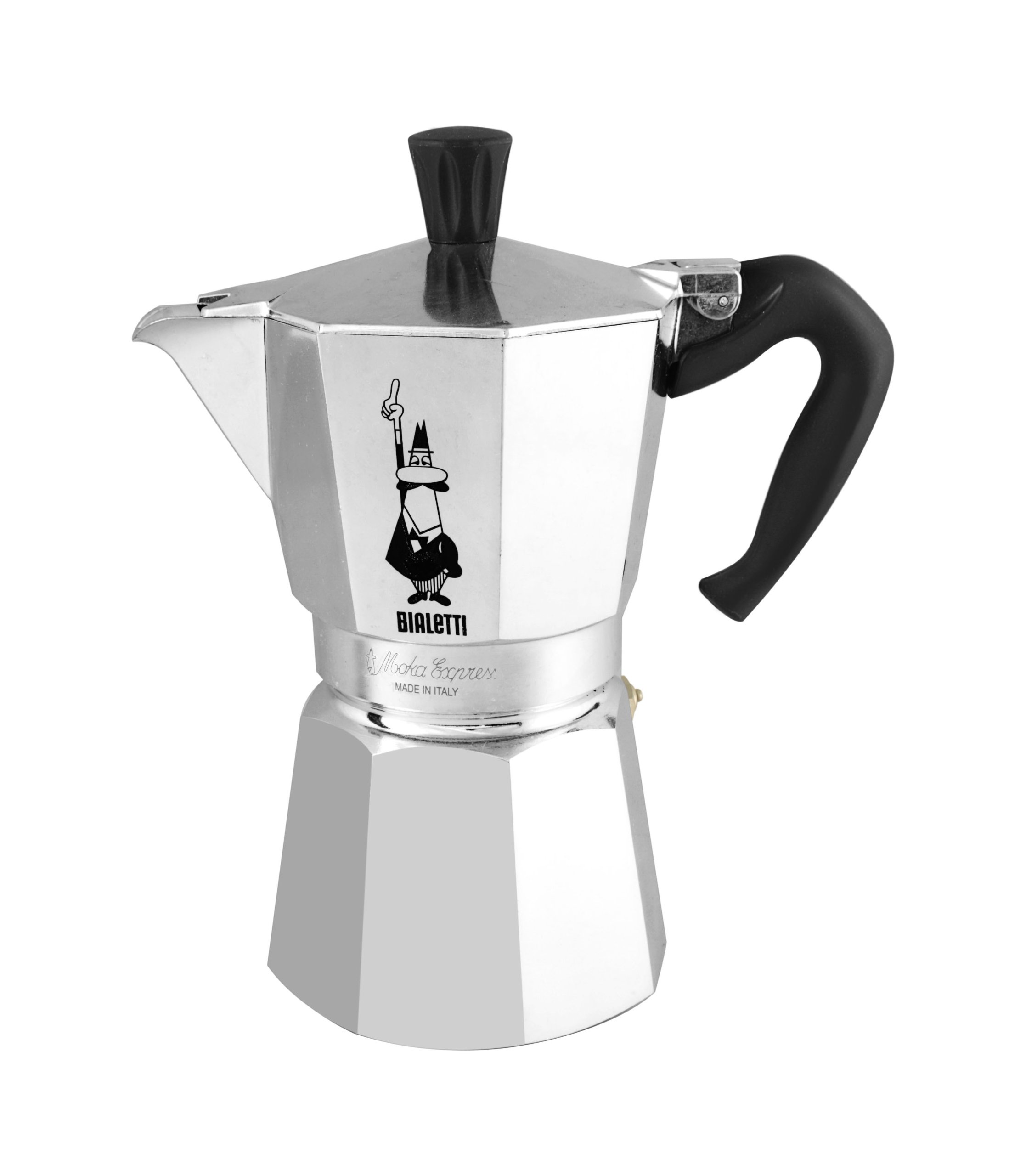 The Moka Express, from Bialetti, is the original stove top coffee maker. It is made from solid cast aluminium with black acrylic handle and knob.