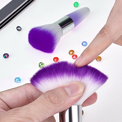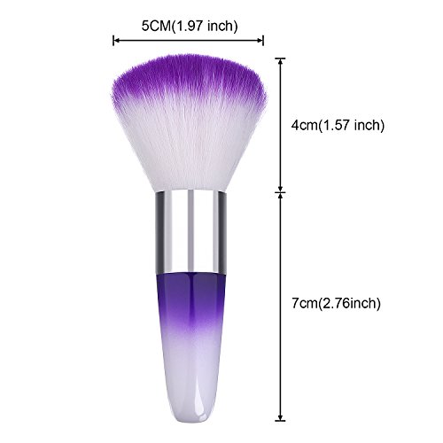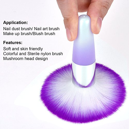eBoot soft nail acrylic dust brushes, makeup powder blush brushes, horny dust cleaner and remover brush for nail art Features: The package includes 2 pieces nail brushes in different colors, you can choose them for different usages; The makeup brushes have a proper size for easy application and convenient carrying when you travel or go out for work. Mushroom head shape: The polish remover brushes adopt wonderful design with mushroom head shape, which allows you to brush a larger area to save time for makeup. Different usages: The makeup remover brushes are soft, well applied for makeup and nail art, giving a comfortable touch feeling for your face or nails; They can easily remove dust particles during the nail polish process, you also can apply them for makeup with blush or powder. Good design: The remover brushes are compact and not easy to lose hair or fade, please be assured application. Package contents: 2 x Purple brush 0