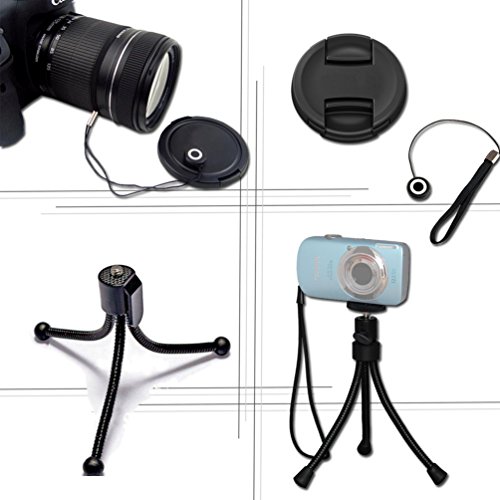 Additionally the Kit includes a Well Padded Stylish Case with Adjustable Compartment Dividers and Zippered pocket to enable fitting the common necessary accessories + a Full Size Pro grade 60" inch Tripod with 3-Way Pan-Head, Bubble level indicator, 3 Section aluminum alloy lock in legs + Universal Card Reader + Memory Card Wallet Case Holder + a Flexible Mini Table Tripod a+ a Lens Cap Holder + 2 Screen Protector + Deluxe Cleaning Kit and a HeroFiber® Ultra gentle cleaning cloth designed for cleaning electronics and accessories.