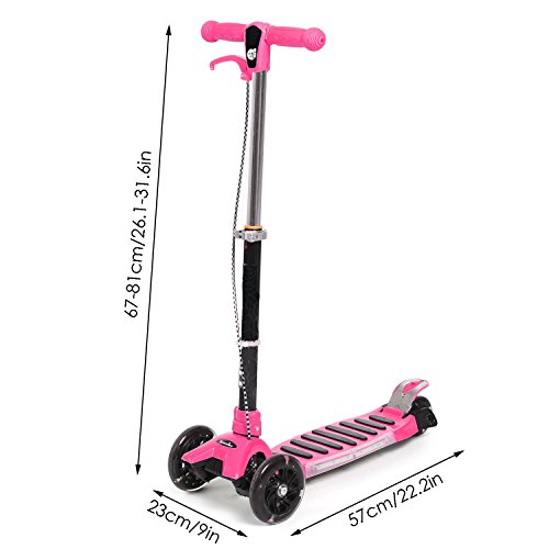 -. Feature : Material: Aluminum. Pipe is reinforced with aluminum, which makes it safer and more durable / Features: safe and non-slip handle, non-slip anti-pressure footboard, the thicken base, Increase the size of the PU wheel, the design of double rear wheel close together, foldable / Advantage: Flash wheel, it will be able to light when turning. Adjustable height is suitable for children of different height / Item Dimension: 31.89 x 9.06 x 22.44 inches,Support weight up to 110 lbs. kids age 2+ / Best Gifts:Kids riding kickboard scooter, exercise the child's balance, a gift for your children like birthday